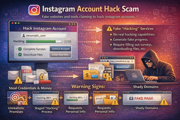 The "Instagram Account Hack" scam refers to websites or tools that claim they can break into someone else’s Instagram account. These pages often adv...