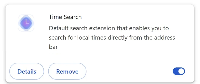 La publicidad en línea también se utiliza para promocionar extensiones de navegador asociadas a secuestradores. Los anuncios pueden afirmar que una extensión mejora el acceso a las búsquedas, simplifica la navegación o añade funciones de comodidad. Tras la instalación, la extensión realiza acciones no relacionadas con estas afirmaciones. En su lugar, modifica la configuración del navegador y fuerza el comportamiento de redirección vinculado a un sitio promocionado como timesearches.com.
